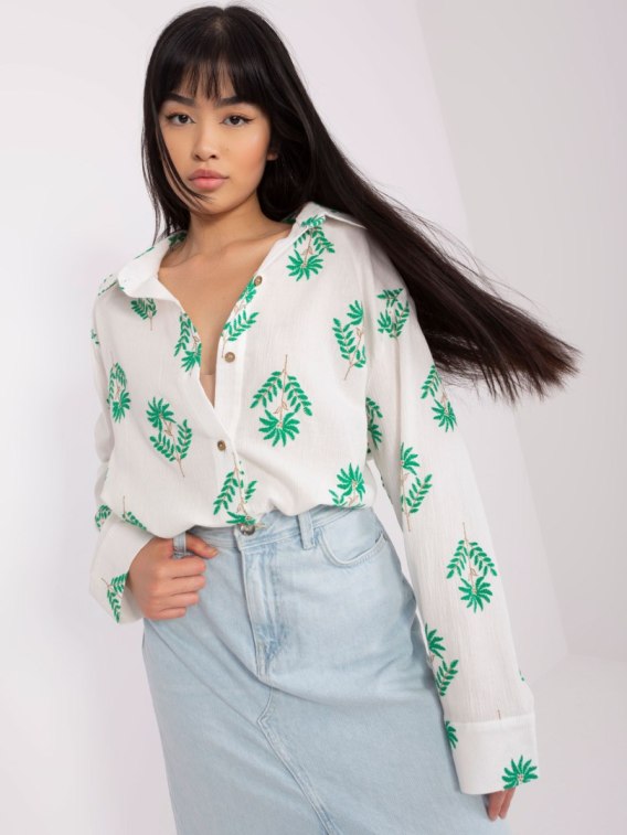 Ecru-zielona damska koszula oversize we wzory .