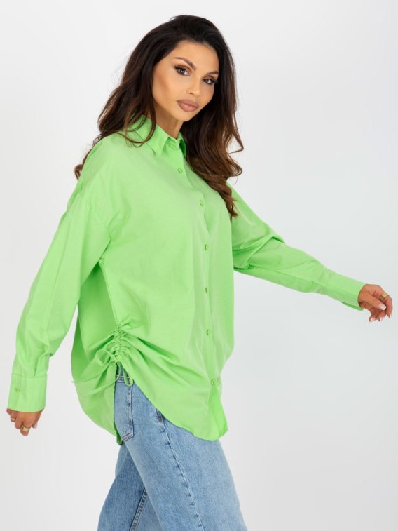Jasnozielona damska koszula oversize z kołnierzem .