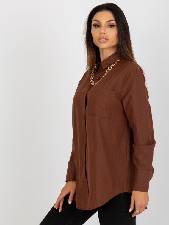 Brązowa damska koszula oversize z łańcuszkiem .