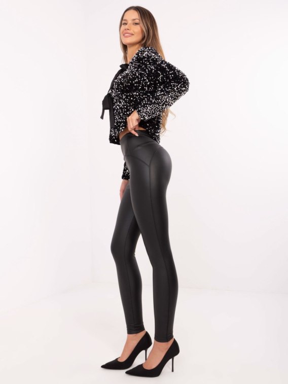 Wymiary legginsów w rozmiarze S mierzone na płasko: szerokość w pasie - 32 cm, wysokość stanu - 31 cm, długość całkowita - 96 cm.