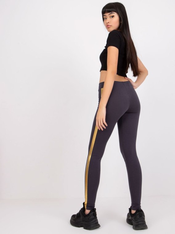 RUE PARIS Ciemnoszaro-złote legginsy.