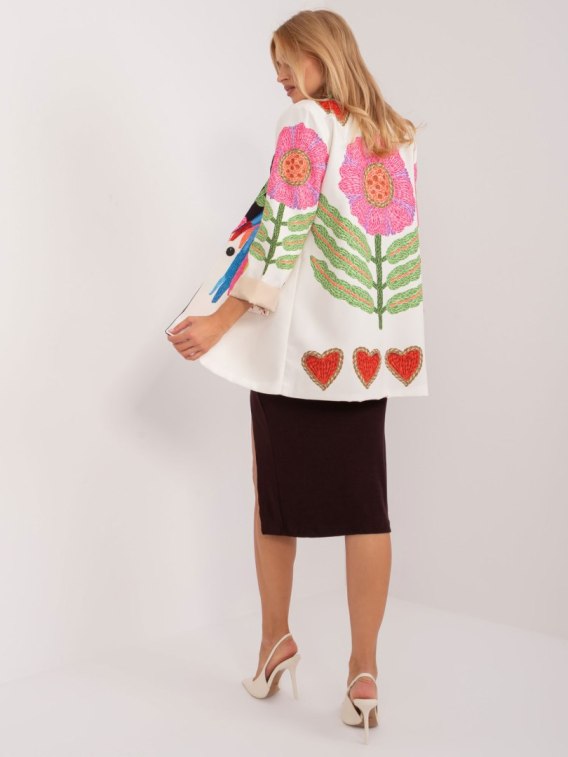 Wymiary marynarki w rozmiarze one size mierzone na płasko: szerokość pod pachami - 54 cm, długość rękawa - 59 cm, długość całkowita - 78 cm