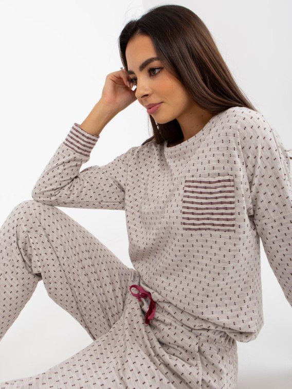 Jasnobeżowa dwuczęściowa piżama ze spodniami .