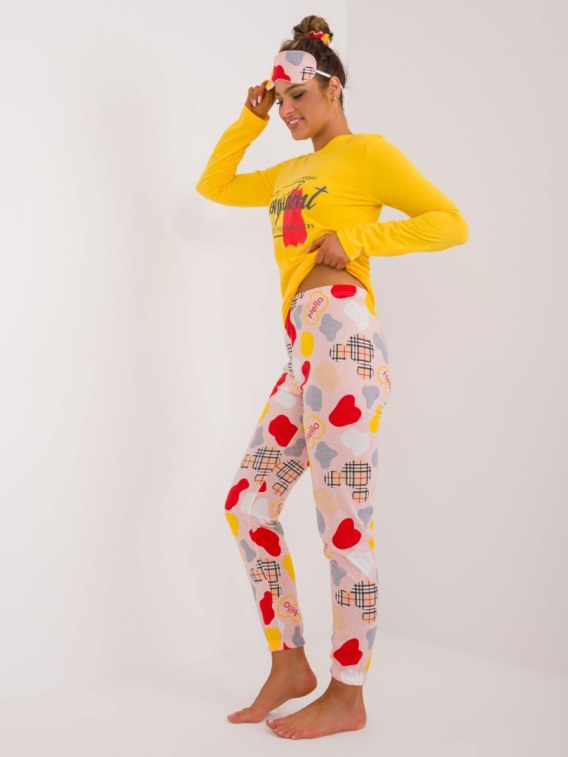 Wymiary piżamy w rozmiarze S mierzone na płasko: bluzka: szerokość pod pachami - 45 cm, długość rękawa - 62 cm, długość całkowita - 72 cm, spodnie: szerokość w pasie - 30 cm, długość całkowita - 98 cm.