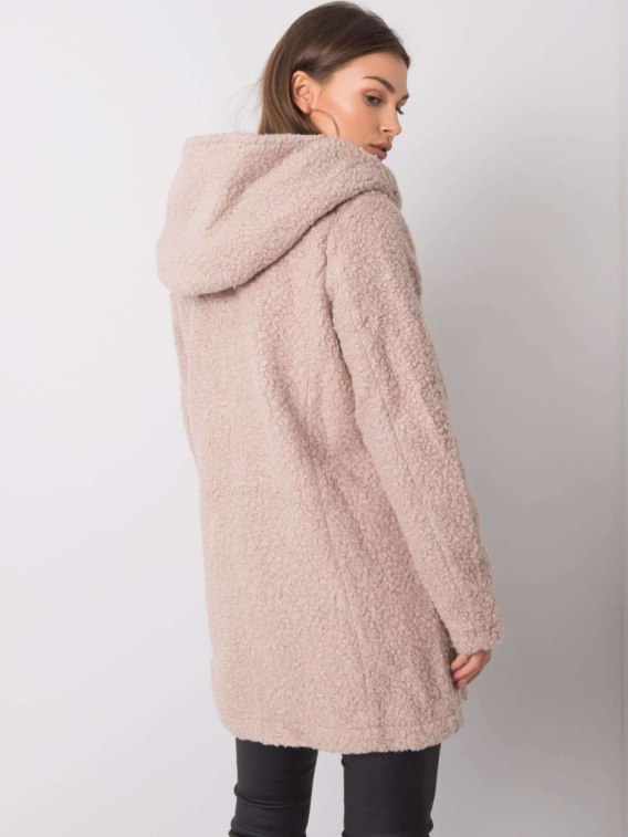 Beżowy płaszcz bouclé.