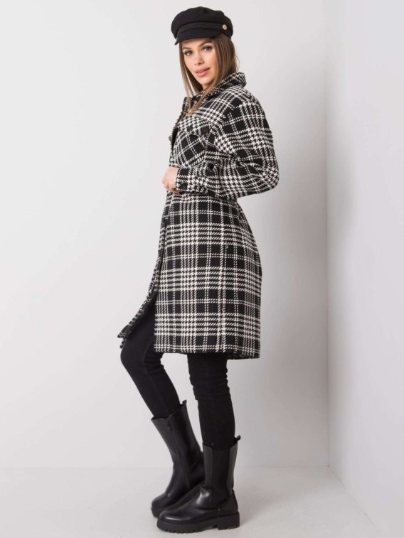 Wymiary płaszcza w rozmiarze 36 mierzone na płasko: szerokość pod pachami - 55 cm, długość całkowita - 94 cm, długość rękawa - 64 cm