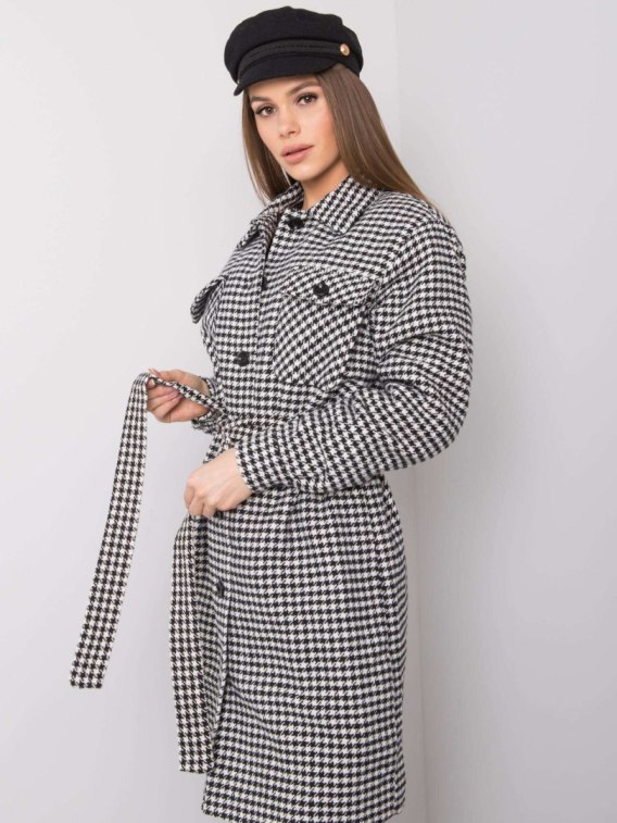 Wymiary płaszcza w rozmiarze 36 mierzone na płasko: szerokość pod pachami - 53 cm, długość całkowita - 93 cm, długość rękawa - 64 cm