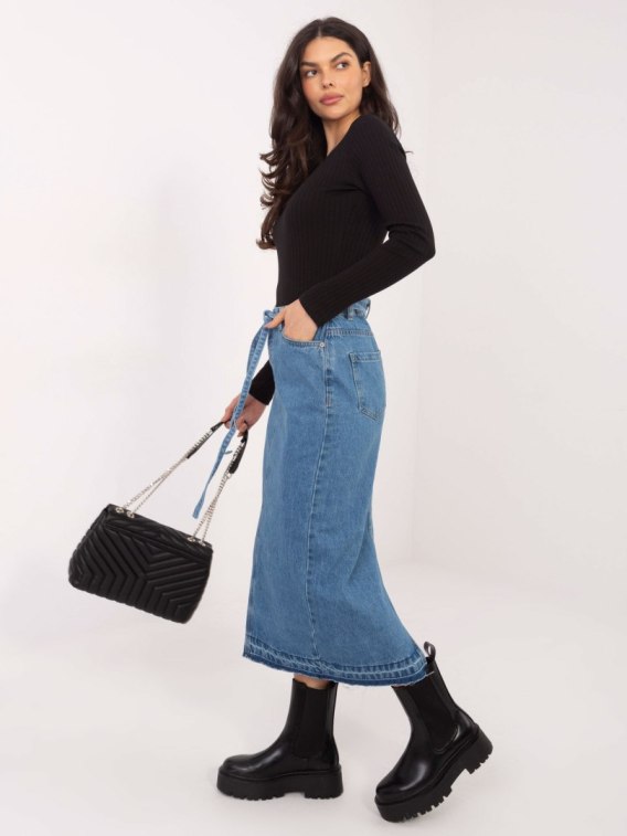 Wymiary spódnicy w rozmiarze S: mierzone na płasko: szerokość w pasie - 38 cm, szerokość w biodrach - 49 cm, długość całkowita - 86 cm.