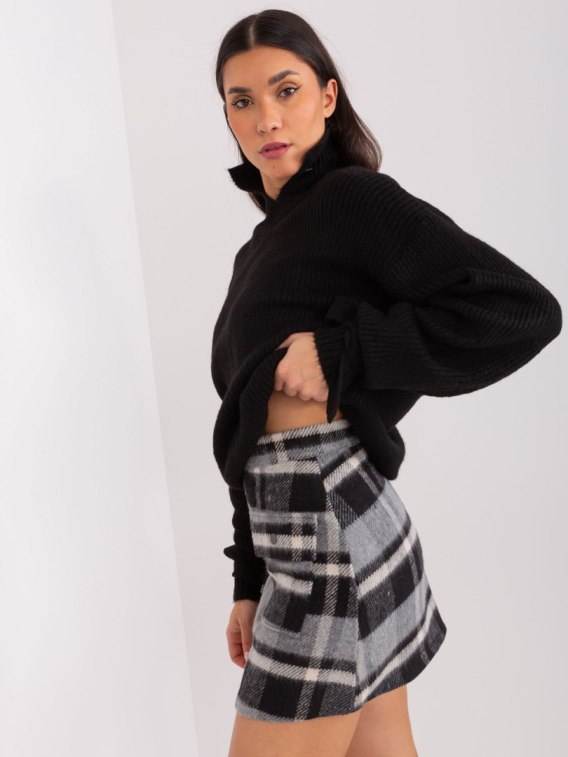 Ciemnoszara trapezowa spódnica z kieszeniami.