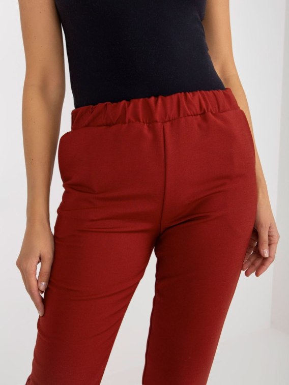 Bordowe materiałowe spodnie od garnituru z gumką w pasie.