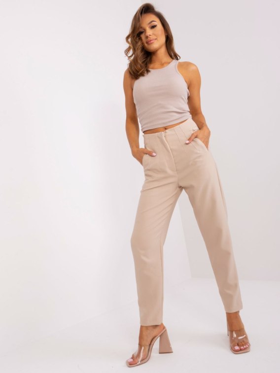 Beżowe eleganckie spodnie z kieszeniami OCH BELLA .