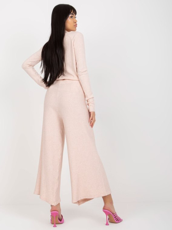 Jasnoróżowe spodnie dzianinowe z szeroką nogawką .