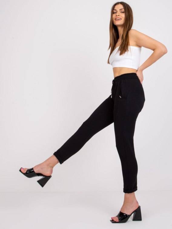 Wymiary spodni w rozmiarze S mierzone na płasko: szerokość w pasie - 33 cm, długość spodni - 86 cm, wysokość stanu - 26 cm.