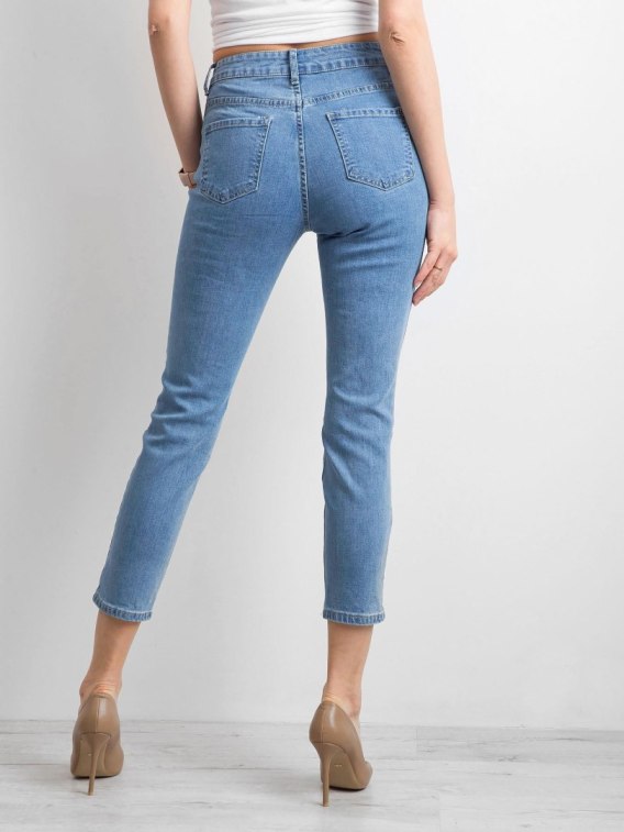 Niebieskie damskie spodnie z dziurami.