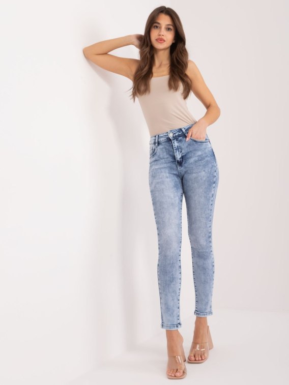 Niebieskie jeansy damskie skinny.