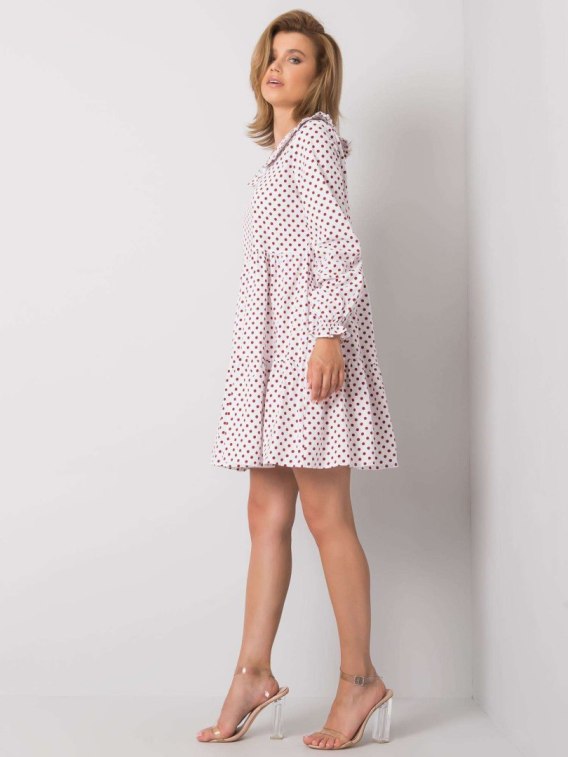 RUE PARIS Biało-czerwona sukienka z falbaną.