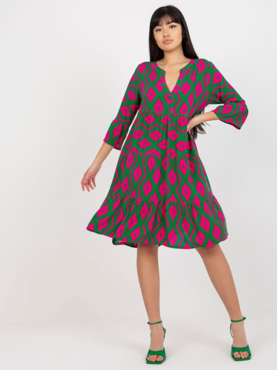 Zielona damska sukienka z printam i falbaną SUBLEVEL .
