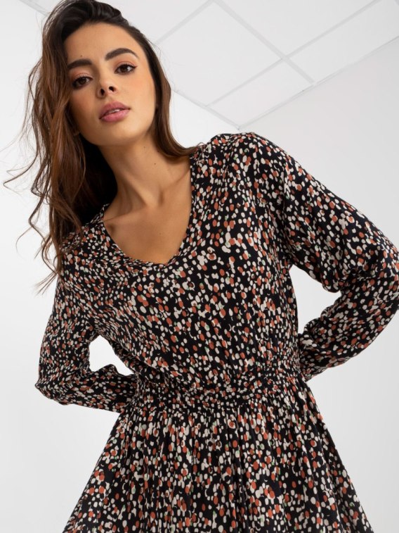 Czarna rozkloszowana midi sukienka z printami FRESH MADE .