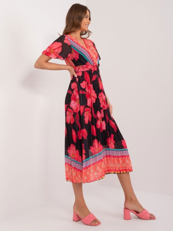 Wymiary sukienki w rozmiarze one size mierzone na płasko: szerokość pod pachami - 45 cm, długość całkowita - 122 cm, długość rękawa - 22 cm.