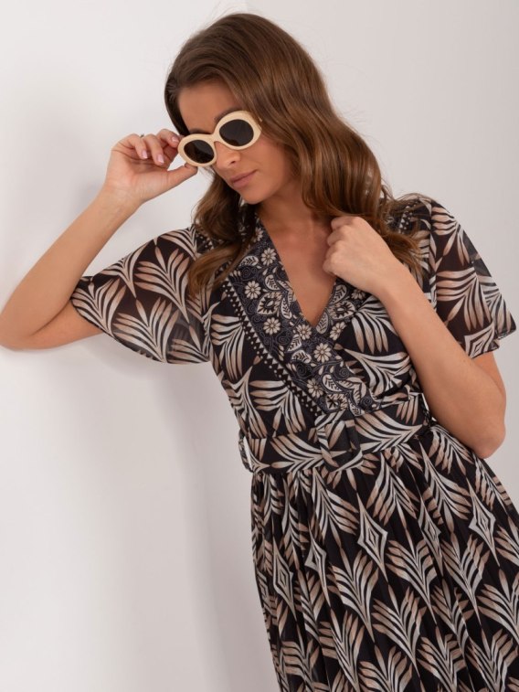 Wymiary sukienki w rozmiarze one size mierzone na płasko: szerokość pod pachami - 44 cm, długość całkowita - 118 cm, długość rękawa - 21 cm