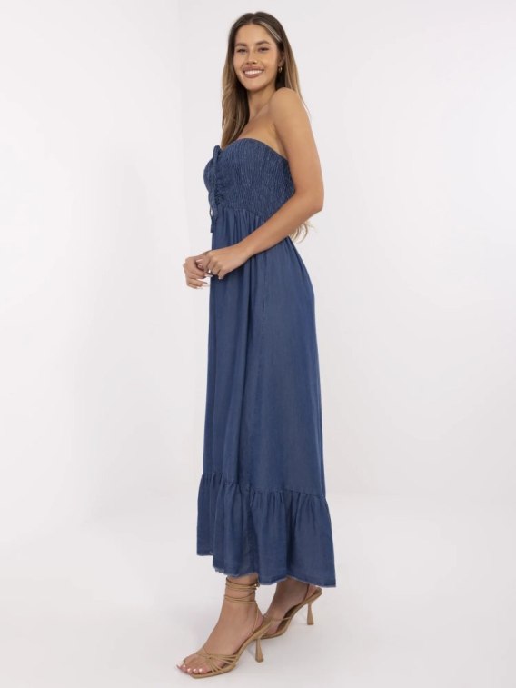 Wymiary sukienki w rozmiarze one size mierzone na płasko: szerokość pod pachami - 27 cm (na płasko), szerokość pod pachami - 63 cm ( po rozciągnięciu), szerokość w talii - 37 cm (na płasko), szerokość w talii - 65 cm ( po rozciągnięciu), szerokość w biodrach - 69 cm, długość całkowita - 118 cm.