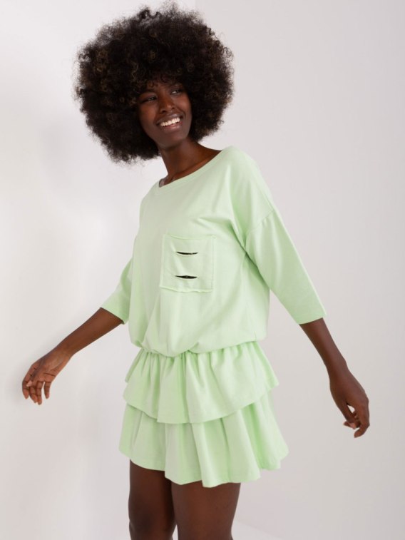 Wymiary sukienki w rozmiarze S mierzone na płasko: szerokość pod pachami - 60 cm, długość rękawa - 38 cm, długość całkowita - 85 cm.