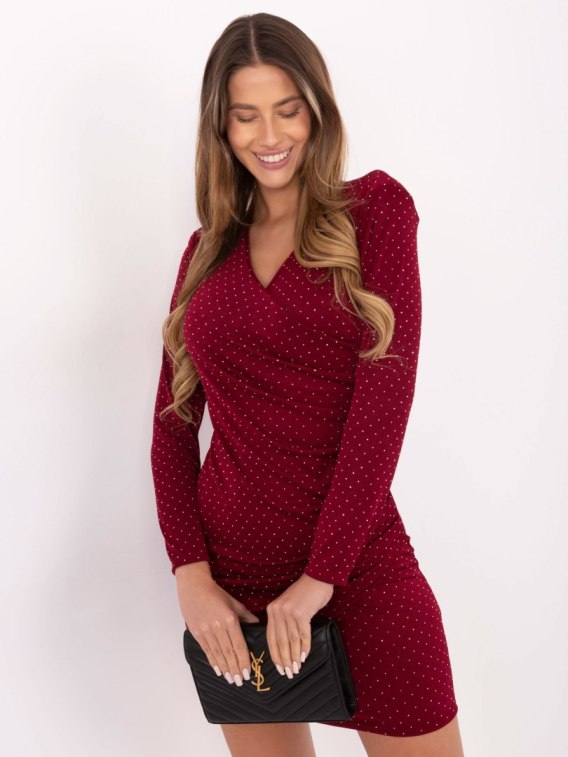 Wymiary sukienki w rozmiarze one size mierzone na płasko: szerokość pod pachami - 45 cm, długość rękawa - 55 cm, szerokość w talii - 35 cm, szerokość w biodrach - 40 cm, długość całkowita - 90 cm.