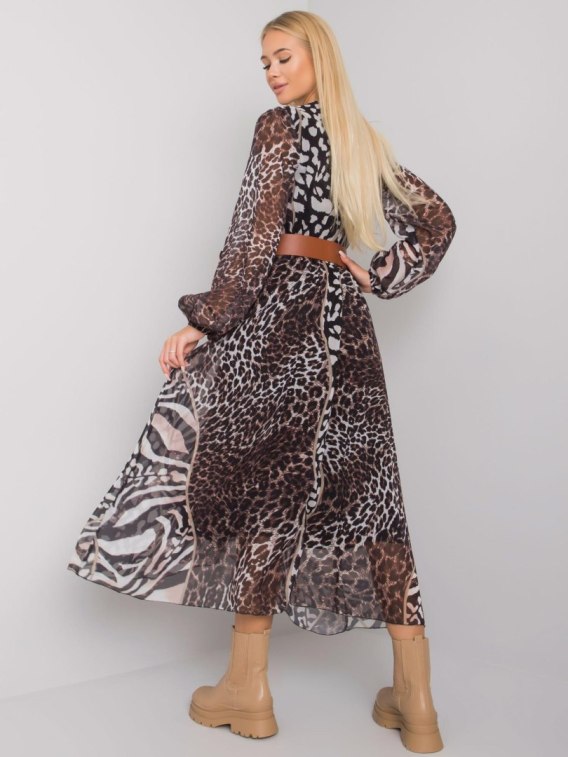 Wymiary sukienki w rozmiarze S mierzone na płasko: szerokość pod pachami - 44 cm, długość całkowita - 125 cm, długość rękawa - 65 cm