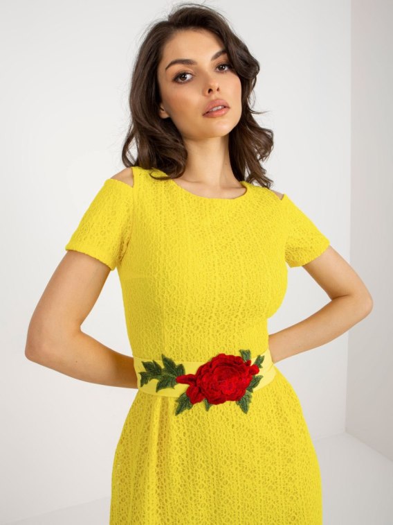 Żółta rozkloszowana sukienka wieczorowa z podszewką .