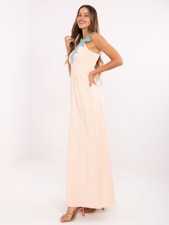 Wymiary sukienki w rozmiarze 36 mierzone na płasko: szerokość pod pachami - 40 cm, szerokość w talii - 33 cm, szerokość w biodrach - 52 cm, długość całkowita - 155 cm.
