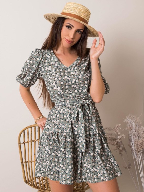 Zielona sukienka damska w kwiaty.