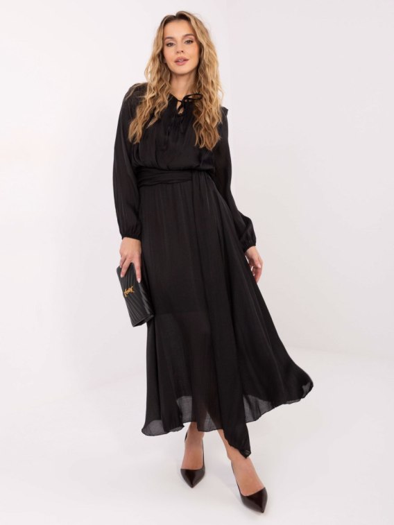 Wymiary sukienki w rozmiarze S/M mierzone na płasko: szerokość pod pachami - 45 cm, długość całkowita - 134 cm, szerokość w biodrach - 61 cm, szerokość w talii - 31 cm długość rękawa - 59 cm.