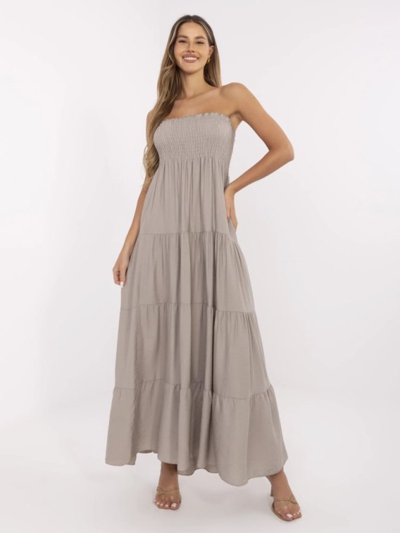 Wymiary sukienki w rozmiarze one size mierzone na płasko: szerokość pod pachami - 32 cm (na płasko), szerokość pod pachami - 62 cm ( po rozciągnięciu), szerokość w talii - 36 cm (na płasko), szerokość w talii - 60 cm ( po rozciągnięciu), szerokość w biodrach - 56 cm, długość całkowita - 128 cm.