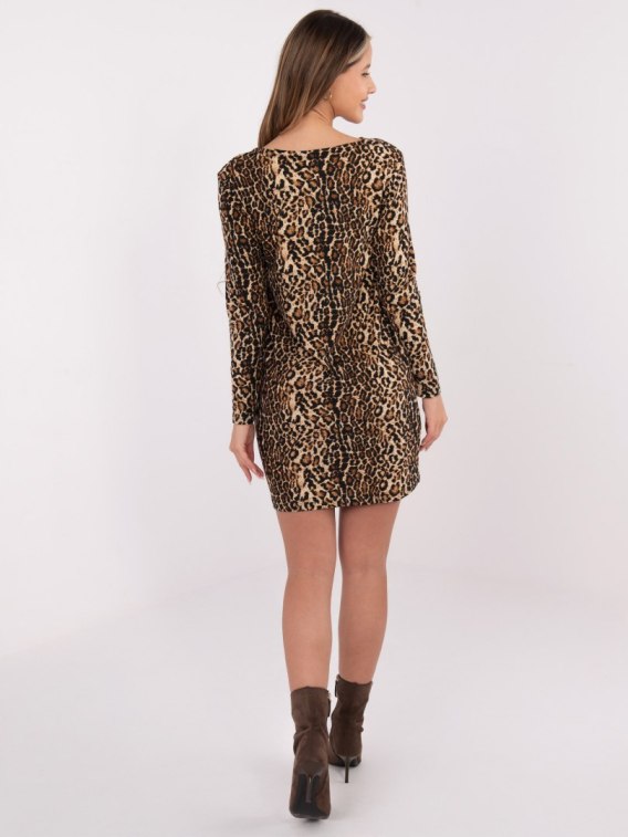 Wymiary sukienki w rozmiarze one size mierzone na płasko: szerokość pod pachami - 48 cm, szerokość w biodrach - 51 cm, długość całkowita - 92 cm, długość rękawa - 61 cm.
