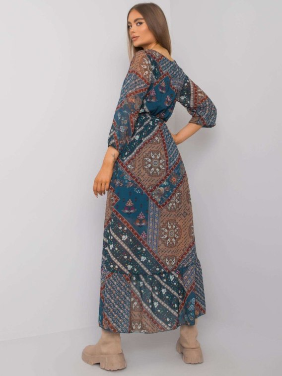 Wymiary sukienki w rozmiarze one size mierzone na płasko: szerokość pod pachami - 45 cm, długość całkowita - 120 cm, długość rękawa - 48 cm