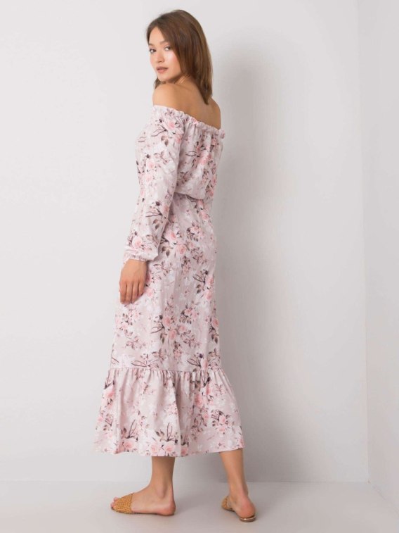 RUE PARIS Brudnoróżowa wzorzysta sukienka hiszpanka.