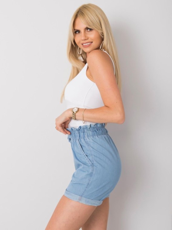 RUE PARIS Niebieskie szorty z podwijanymi nogawkami .