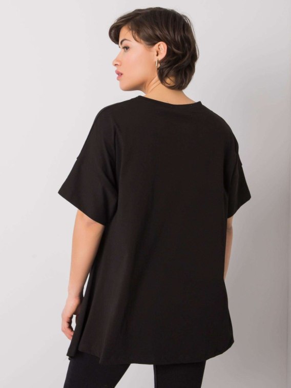 RUE PARIS Czarny t-shirt z dłuższym tyłem.