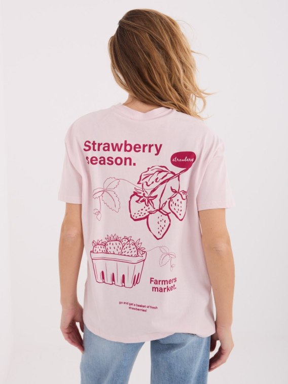 Wymiary t-shirtu w rozmiarze S mierzone na płasko: szerokość pod pachami - 54 cm, długość rękawa - 18 cm (od szwu), szerokość w biodrach - 54 cm, długość całkowita - 65 cm.