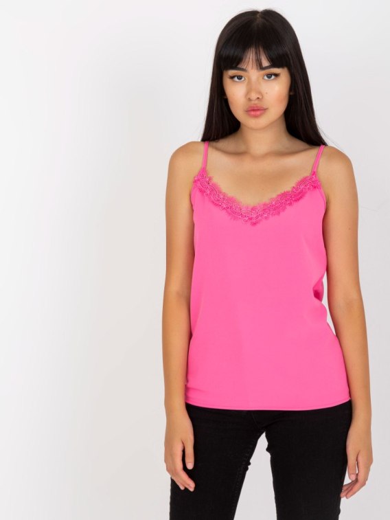 Różowy top na cienkich ramiączkach .
