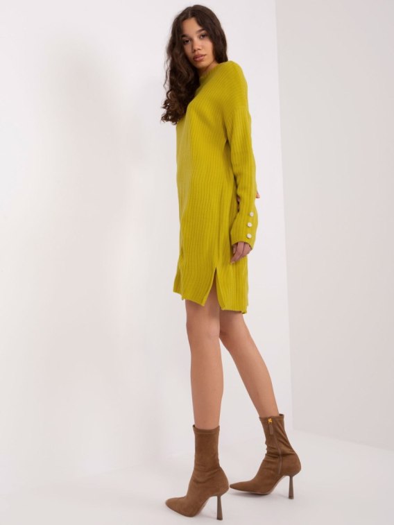 Oliwkowa sukienka dzianinowa z rozcięciami .
